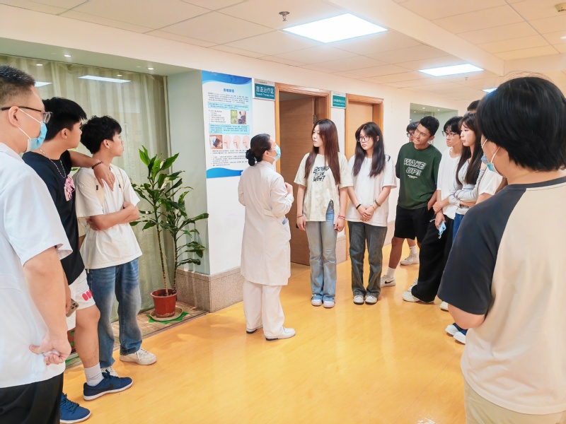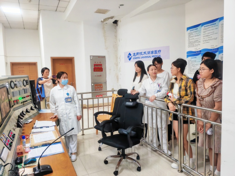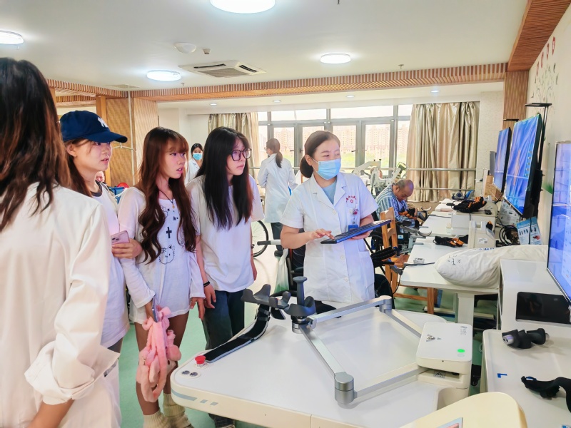 隨后,涂部長又帶領(lǐng)同學(xué)們參觀了高壓氧艙、重癥監(jiān)護(hù)病房、運動治療區(qū)、兒童康復(fù)區(qū)、以及普通病區(qū)等多個區(qū)域。每到一個參觀區(qū)域,區(qū)域負(fù)責(zé)人都會向同學(xué)們詳細(xì)介紹科室康復(fù)治療的設(shè)施和發(fā)展?fàn)顩r,并現(xiàn)場示范各種康復(fù)設(shè)備的使用方法。同學(xué)們也積極與老師進(jìn)行互動,及時向老師提問,受益匪淺。