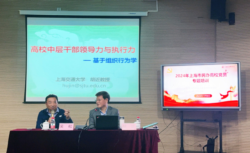2024年11月8日,由上海民辦高校干部和黨員研修基地主辦、我校承辦的2024年上海民辦高校黨員專題培訓(xùn)班在體藝樓小劇場開班授課。報告會邀請上海交通大學(xué)公共管理學(xué)教授、博士生導(dǎo)師,原上海交通大學(xué)黨委副書記胡近教授做“高校中層干部領(lǐng)導(dǎo)力與執(zhí)行力”專題報告。校黨委書記吳松,黨委副書記、校長蔣心亞等校領(lǐng)導(dǎo),以及全體中層干部、培訓(xùn)班全體學(xué)員參加了報告會。報告會由吳松書記主持。