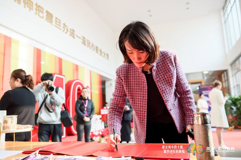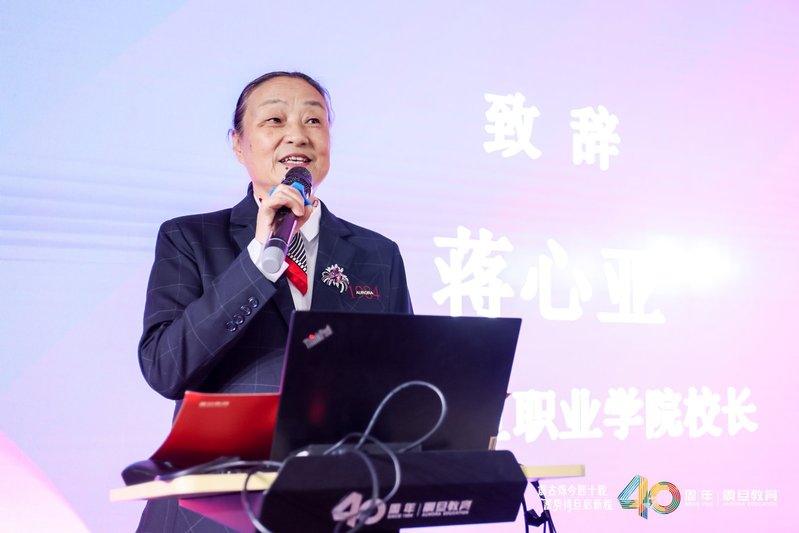 上海震旦職業(yè)學(xué)院校長蔣心亞致辭。她指出,四十年風(fēng)雨兼程,震旦人始終秉持“崇尚科學(xué)、注重文藝、不講教理”的校訓(xùn)精神,始終胸懷報效國家、教書育人的創(chuàng)業(yè)初心,始終堅定扎根行業(yè)、特色辦學(xué)的立業(yè)恒心,始終追求服務(wù)社會、創(chuàng)造價值的偉業(yè)決心,幾代賡續(xù),蹈厲奮發(fā),從而譜寫了學(xué)校持續(xù)建設(shè)、發(fā)展壯大的辦學(xué)傳奇。她強調(diào),職業(yè)教育不僅是為社會培養(yǎng)技能型人才的搖籃,更是推動經(jīng)濟高質(zhì)量發(fā)展的重要力量,在教育強國的建設(shè)進程中,職業(yè)教育須承擔(dān)起“服務(wù)社會、服務(wù)經(jīng)濟、服務(wù)人民”的重大職責(zé),為行業(yè)發(fā)展提供有力的人才支撐和技術(shù)支持。