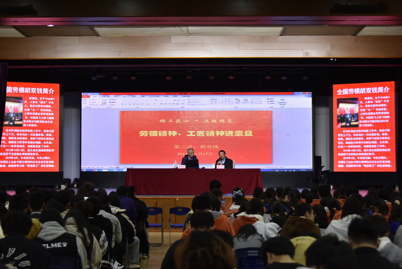 11月27日下午,我校邀請全國勞動(dòng)模范、全國“五一”勞動(dòng)獎(jiǎng)?wù)?、上海市質(zhì)量金獎(jiǎng)等榮譽(yù)稱號(hào)的獲得者胡雙錢作《工匠精神培養(yǎng)與傳承》主題報(bào)告。校黨委書記吳松、副校長王純玉、學(xué)工部長(處長)鐘劼菁、各二級(jí)學(xué)院書記及師生代表500余人聆聽了報(bào)告。報(bào)告會(huì)由吳松書記主持。