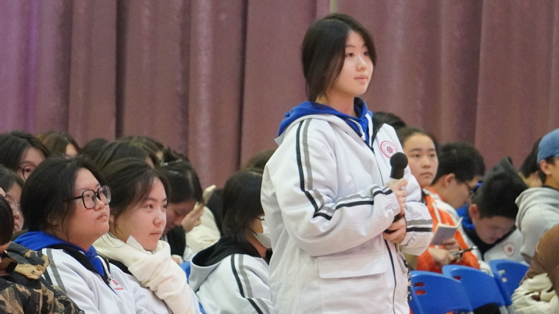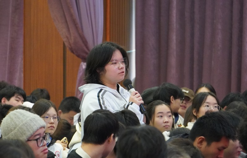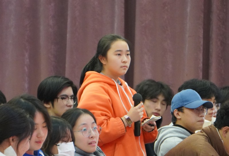 王曙群還與學(xué)生進(jìn)行了現(xiàn)場(chǎng)互動(dòng)。同學(xué)們頻頻舉手提問,王曙群老師一一作答,并鼓勵(lì)同學(xué)們要堅(jiān)守初心、不斷學(xué)習(xí),發(fā)揚(yáng)“特別能吃苦、特別能戰(zhàn)斗、特別能攻關(guān)、特別能奉獻(xiàn)”的精神。同學(xué)們近距離接觸榜樣人物,直面交流,向勞??待R。