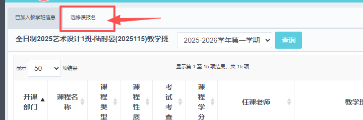 9.點擊“查詢”按鈕,確認(rèn)是否已經(jīng)加入教學(xué)班