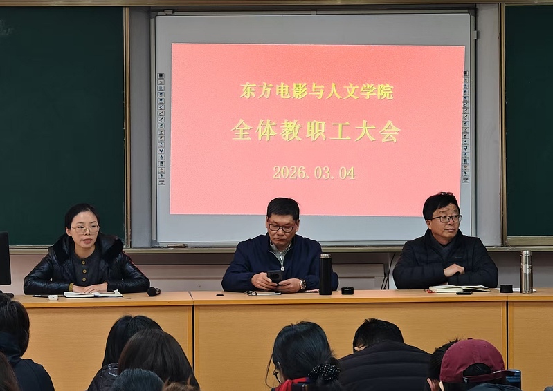 3月4日下午,東方電影與人文學(xué)院在1-209室召開(kāi)全院教職工大會(huì),圍繞學(xué)院發(fā)展、學(xué)生工作、專業(yè)建設(shè)、教學(xué)與招生等核心任務(wù),明確方向、細(xì)化舉措,錨定AI時(shí)代影視藝術(shù)人才培養(yǎng)與產(chǎn)教融合高質(zhì)量發(fā)展。大會(huì)由副院長(zhǎng)祝華東主持。