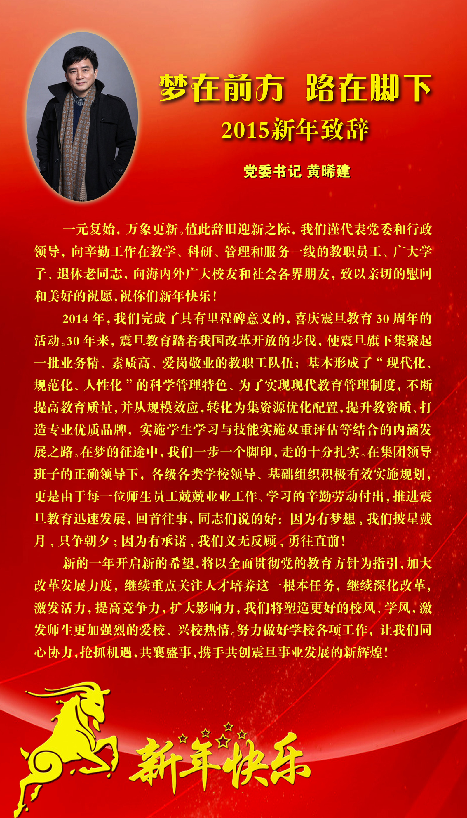 夢在前方,路在腳下—— 2015新年致辭