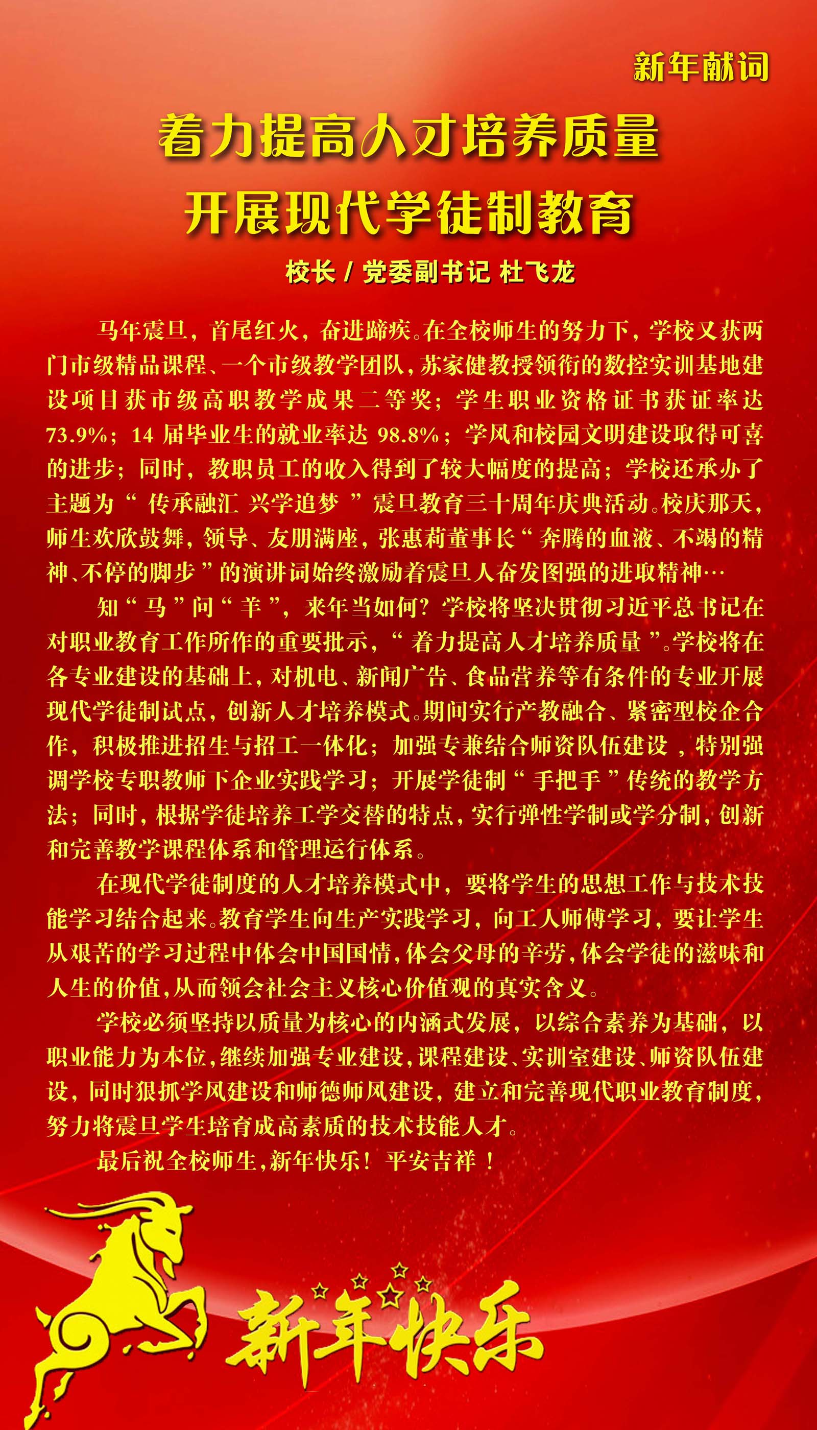 新年獻(xiàn)詞——著力提高人才培養(yǎng)質(zhì)量 開展現(xiàn)代學(xué)徒制教育